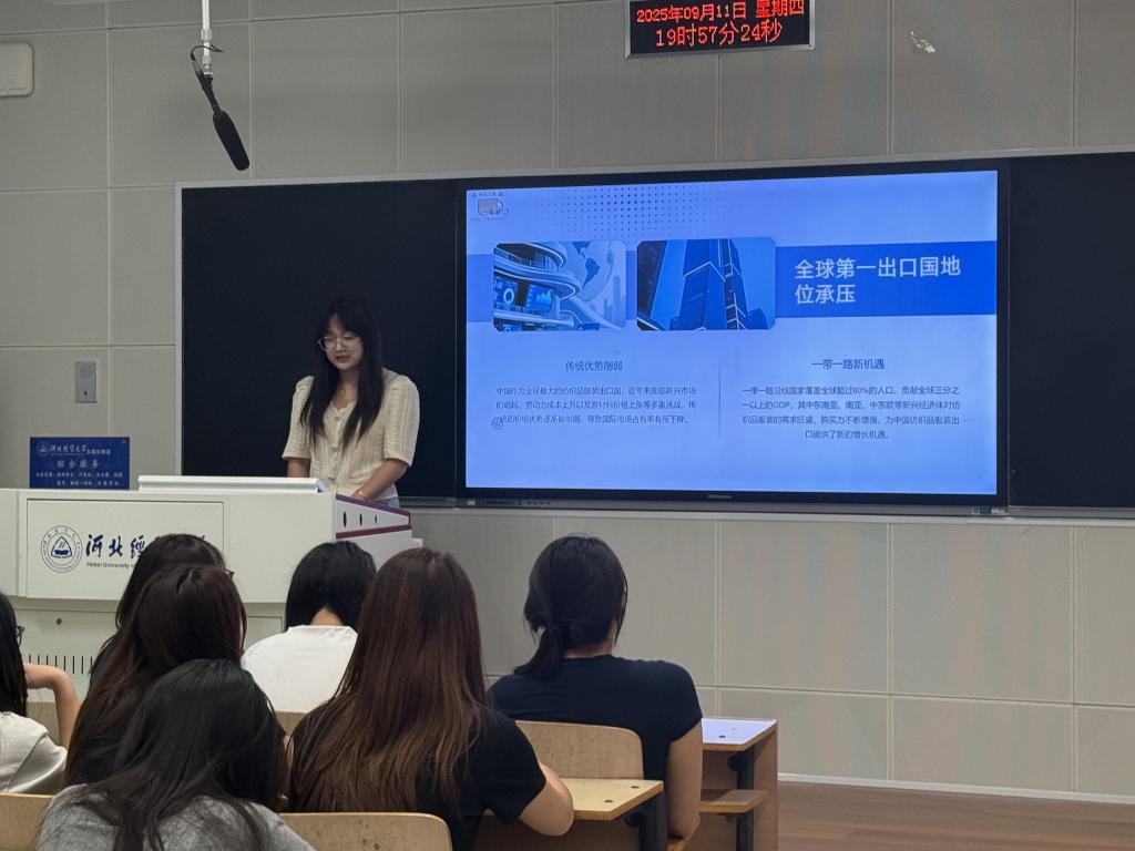 2025年9月11日晚上七点,由英国上市365平台主办的第二十七期学术沙龙在第三教学楼A305顺利举行。本次沙龙邀请郎郸妮老师进行指导点评,由2024级国际商务专业的黄爽、刘志兰、屈亚楠、王舒展、刘敏和赵怡然六位同学进行分享,英国上市365平台2024级和2025级研究生共同参与。