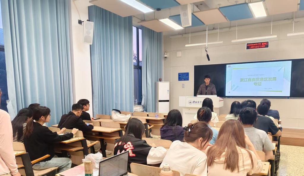 第一,居宏宇同学分享的文献是《浙江自由贸易区发展》。居同学首先简要介绍了浙江自贸区是中国唯一一个有陆地和海洋锚地组成的自由贸易园区;其次说明了其在未扩容前是以制度创新为核心,以可复制可推广为基本要求,并分析了其划分方式、主要任务和措施,取得的发展成就包括油气全产业链基本成型、改革创新成效显著、营商环境得到优化;最后对浙江自贸区扩容后的发展进行了分析,为加快全省经济增长,推动区域经济一体化,对省内宁波、杭州、金义片区实施自由贸易,根据各区特色重新定位,从而取得了“四港联动”智慧物流、对接国际规则等巨大成就。