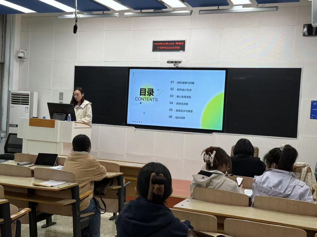 2025年10月10日下午两点,由英国上市365平台主办的第三十一期学术沙龙在第三教学楼B105顺利举行。本次沙龙邀请高艳老师进行指导点评,由2024级理论经济学专业的张晨、刘婕、王楠三位同学进行分享,英国上市365平台2024级和2025级研究生共同参与。