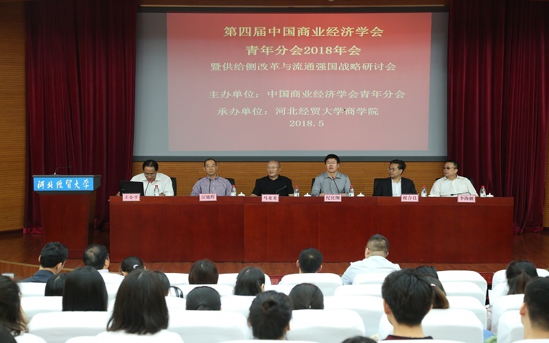 5月5日,由中国商业经济学会青年分会主办、我校商学院承办的第四届中国商业经济学会青年分会年会(2018)暨“供给侧改革与流通强国战略”学术研讨会在国际学术报告厅举行。校党委副书记、校长纪良纲出席会议并讲话,副校长武义青作主题报告,中国商业经济学会会长、中国人民大学博士生导师马龙龙教授,中国商业经济学会副会长、首都经济贸易大学博士生导师祝合良教授,中国商业经济学会副会长、青年分会会长、东北财经大学博士生导师汪旭晖教授,以及来自中国社会科学院、中国人民大学、东北财经大学、中南财经政法大学等20余所高校院所和我校商学院师生共260余人参加。